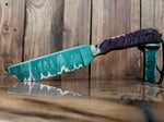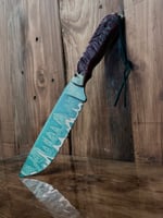 11in OAL, 5 1/4 Cutting Edge. Removable Red Dyed Ram horn scales